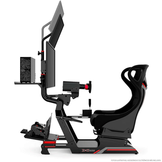 With this additional screen stand in top position, use an extra screen to monitor or interact with game instruments, steering wheel software, or follow chats on live streams such as Youtube or Twitch for example.